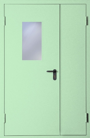 Полуторапольная противопожарная дверь со стеклом EI 60 с порошковым напылением (RAL 6019)